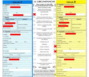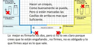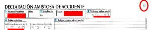 lo primero poner la fecha y el lugar del siniestro, también marcar si hay además de los dos coches, hay un tercero u otro objeto, si hay mas de dos coches los datos del tercero o cuarto se ponen en la parte trasera, también es importante marcar la casilla de lesionados,  si hay alguien que le duela algo o no.